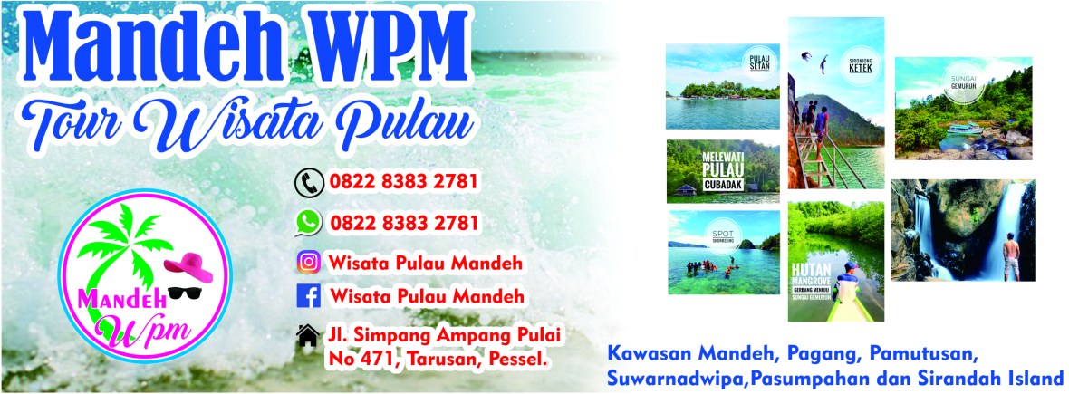 Kawasan Wisata Mandeh terletak di Kec. Koto XI Tarusan, Kabupaten Pesisir Selatan, Sumatera Barat. Kawasan mandeh merupakan salah satu Icon Pariwisata Pesisir Selatan yang sangat di banggakan. Bagaimana tidak, gugusan pulaunya yang sangat indah sering digadang-gadangkan sebagai Raja Ampatnya Sumatera. Apalagi, Kawasan wisata mandeh ini di ibaratkan Nasi Padang, hal tersebut dikarenakan pengunjung dapat menikmati indahnya laut, damainya gunung, dan senyuknya air sungai serta dinginnya air terjun dalam satu kali kunjungan ke Kawasan Wisata Mandeh. Kawasan Wisata Mandeh menjanjikan pengalaman wisata yang tidak akan mudah dilupakan oleh pengunjungnya.